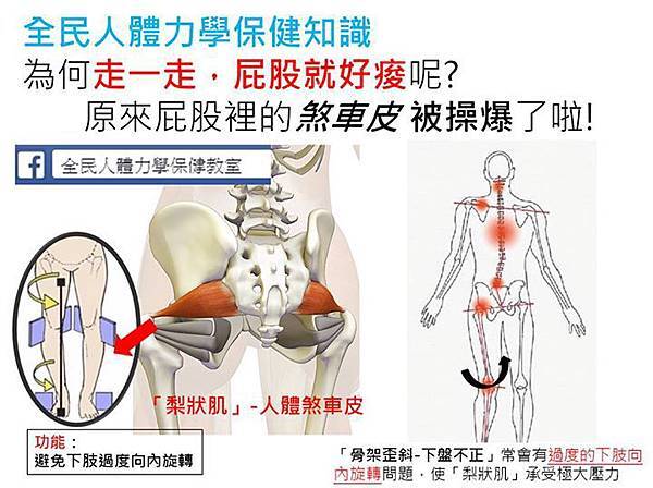 有些人常會抱怨「每次只要去逛個街或散個步、走遠一點時,屁股就痠得要命」,就算每天都去按壓屁股或拉筋,這個老問題就是不容易完全解決,如果你也有這樣的困擾,請留意可能是「臀部內的梨狀肌(煞車皮) 」承受過大力學壓力的源故。